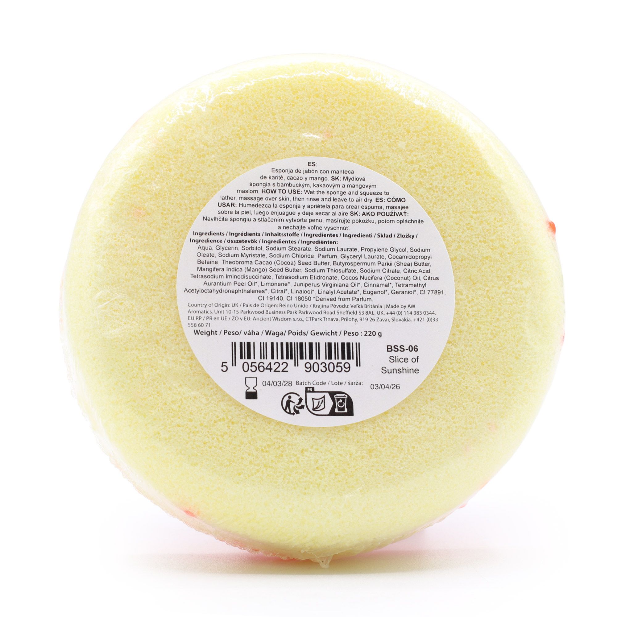 Start your day on a brighter note with the Slice of Sunshine Soap Sponge. Fresh, zesty, and full of energy. With Shea, Cocoa and Mango Butter, combined with this vibrant scent brings a burst of positivity to your daily routine while leaving your skin feeling clean and refreshed.