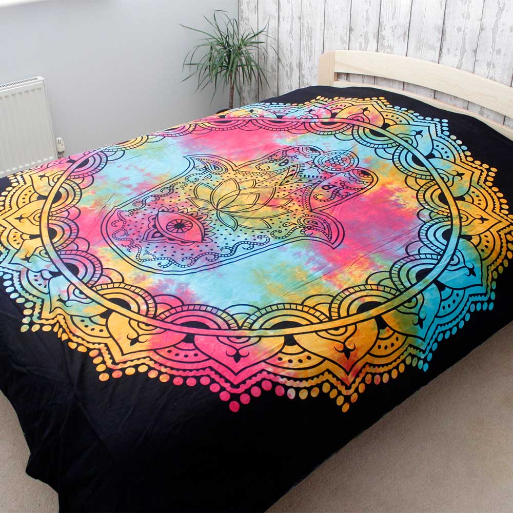 Suitable for a double bed or as a wall hanging, these cotton decorations are handmade in India and available in several colourful designs and stunning black and white designs.