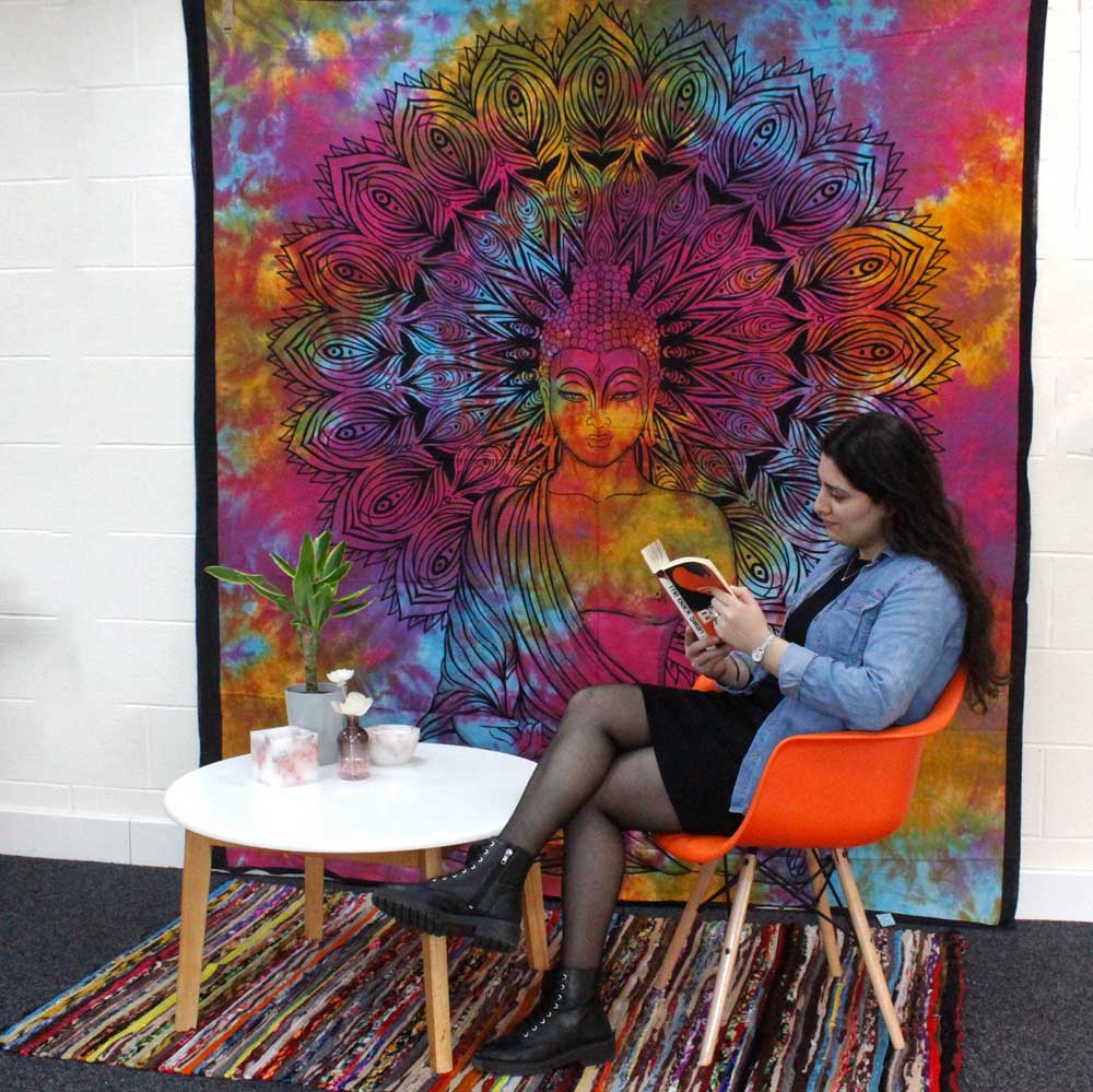 Available in a large selection of colours and designs. These cotton decorations can be used either as bedspread for a double bed or as a wall hanging.