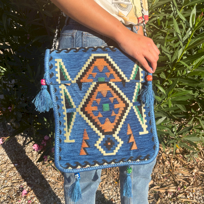 The distinctive design of our Kilim bags effortlessly captivates attention, making them perfect statement pieces.